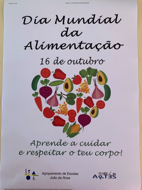 O Dia Mundial da Alimentação comemora-se no dia 16 de outubro em diversas partes do mundo e surgiu como forma de alertar para a importância de uma alimentação saudável, acessível e de qualidade. Numa sociedade tão díspar em que o desperdício e a fome convivem lado a lado, a nossa escola, através dos seus alunos e professores, vai comemorar este importante dia com a realização de uma série de atividades, a saber: