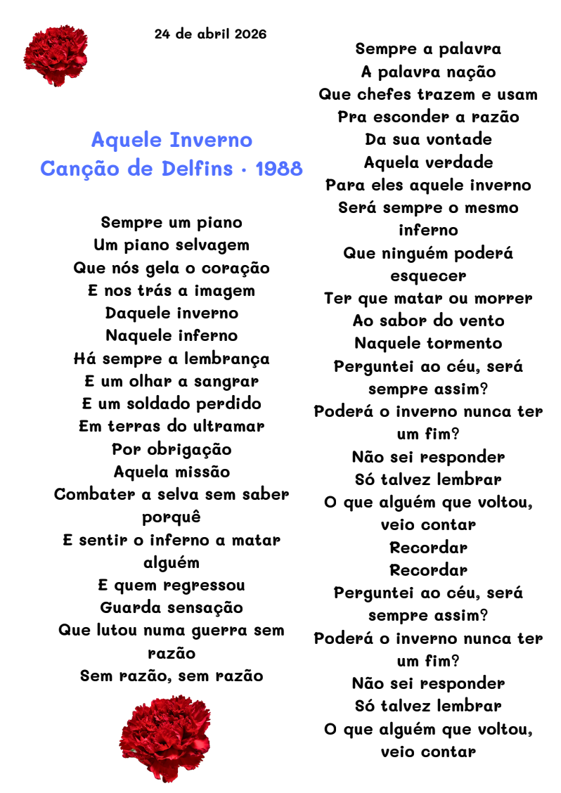 No próximo dia 24 de abril de 2026, a nossa escola antecipa as celebrações da Revolução dos Cravos com uma manhã dedicada à reflexão, à história e à memória, com a preciosa colaboração da liga de Combatentes, Núcleo de Olhão. Convidamos toda a comunidade educativa a juntar-se a nós na Biblioteca António Macheira para uma viagem pelo passado que moldou o nosso presente.